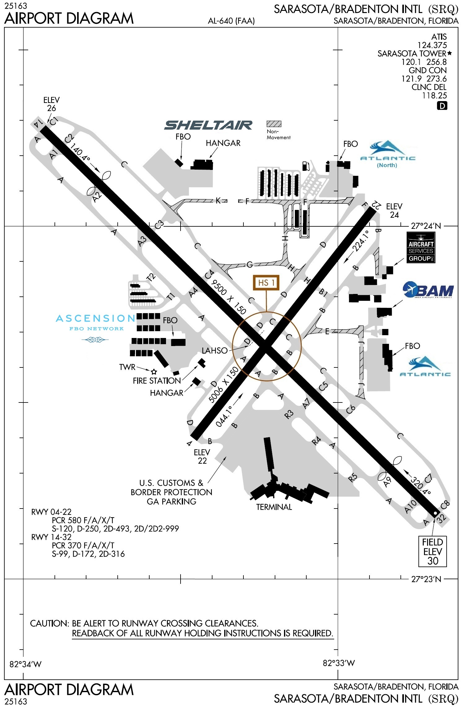 A good portion of the flight activity at SRQ is general aviation; visitors arriving and departing by personal, corporate and chartered aircraft; based aircraft coming and going to destinations of their choosing; local flights for a variety of purposes. Excellent facilities are here to serve the needs of general aviation. Two long runways have ILS, GPS and VOR instrument approaches, full length parallel taxiways on both sides, radar service from Tampa Approach, and a Control Tower.